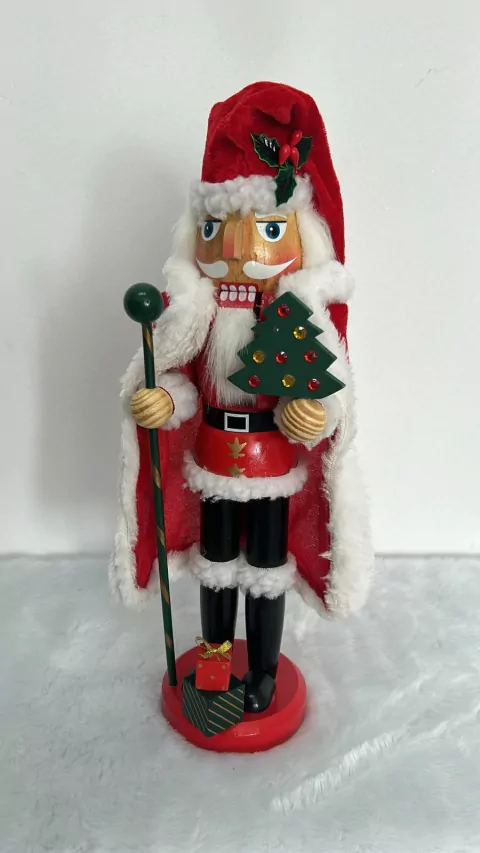 Quebra nozes com roupa de papai Noel com 38cm alt.