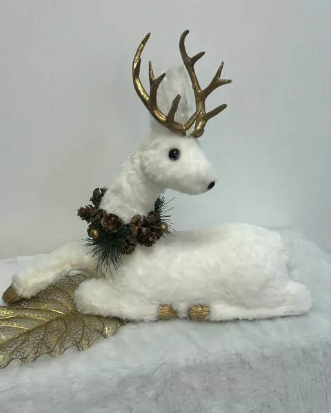 Rena branca deitada colar de pinha 30x40cm quantidade