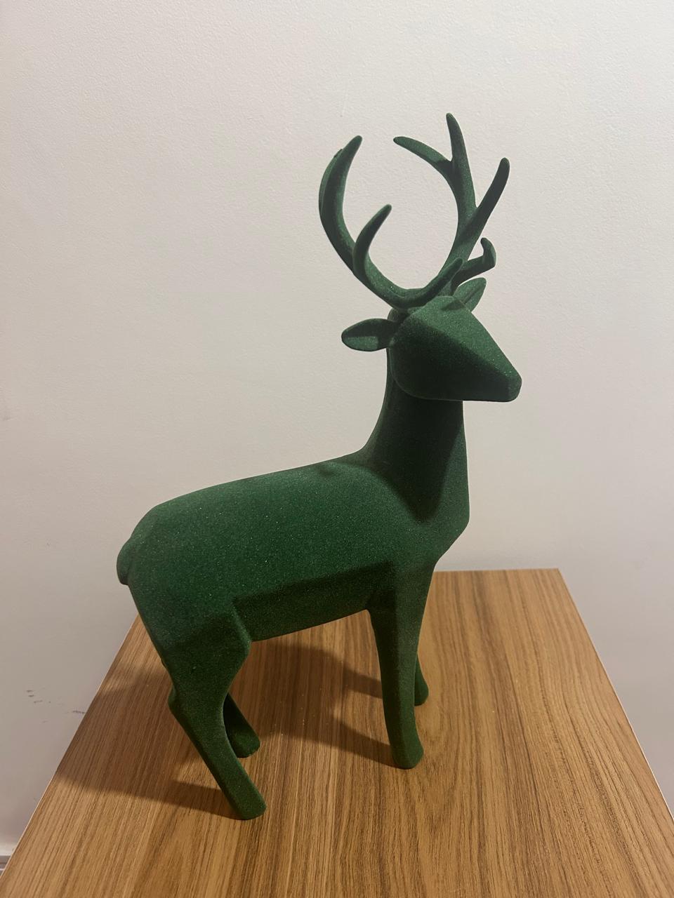 Rena em pé em resina aveludada verde 40cm