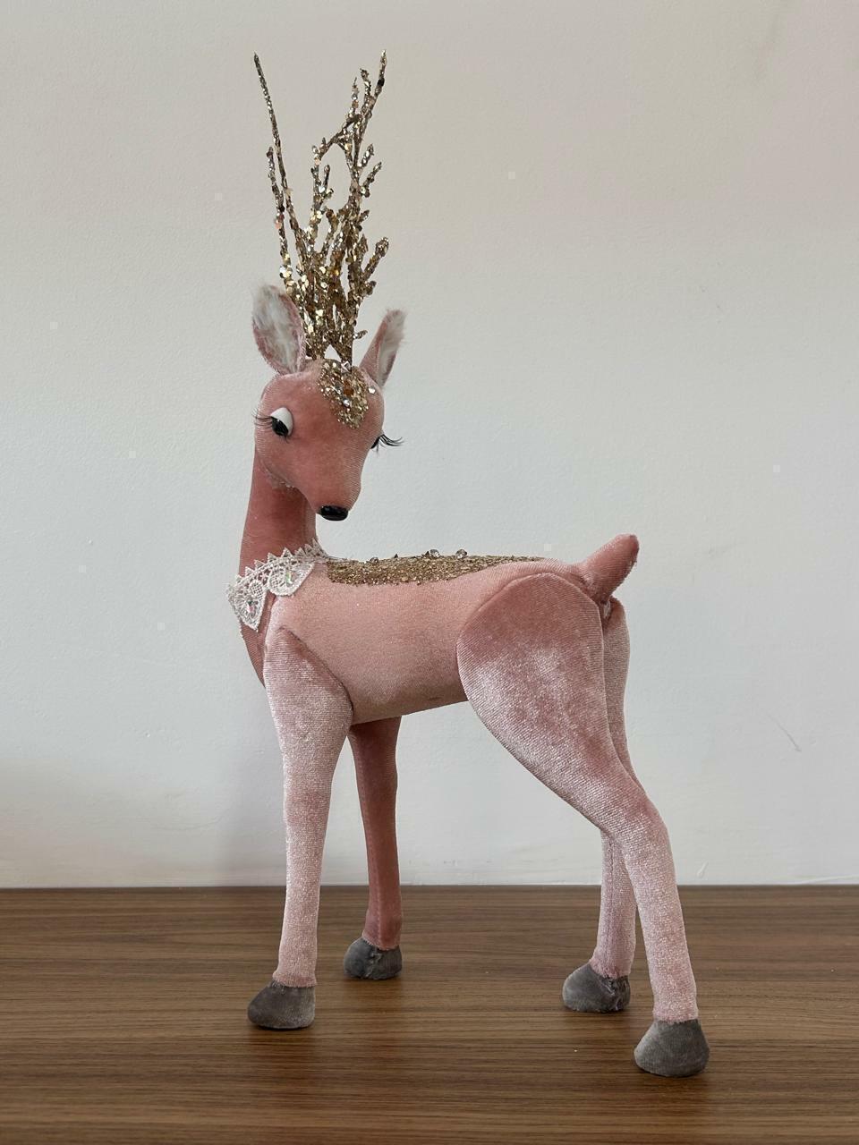 Rena em pé rosa com cílios com 39cm de altura