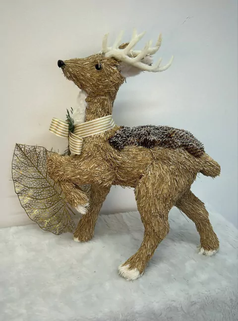Rena natural em pé laço pinha 29cm