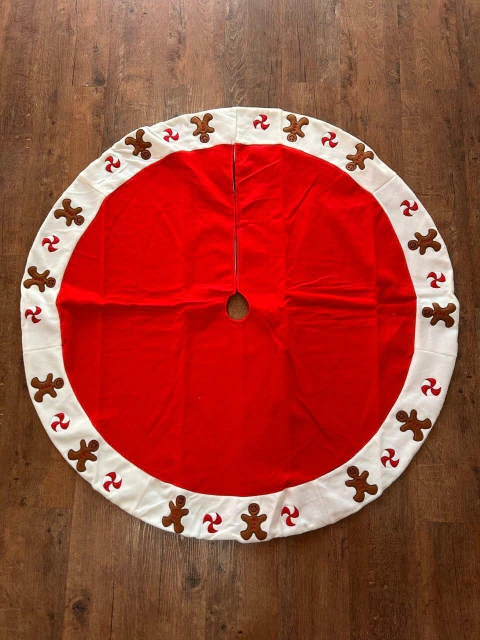 Saia para árvore vermelha com borda de ginger, com 120cm de diâmetro.