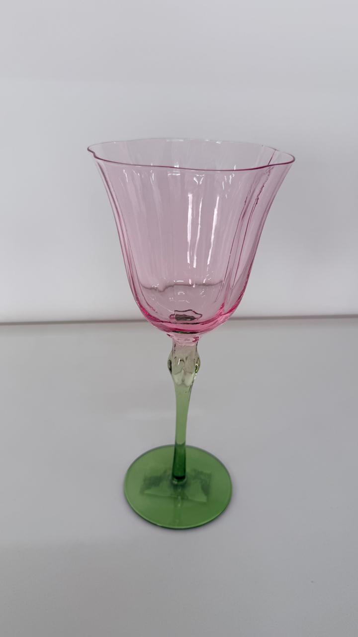 Taça de vinho de vidro rosa e verde