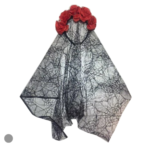 Tiara flores e véu Halloween 20cm quantidade
