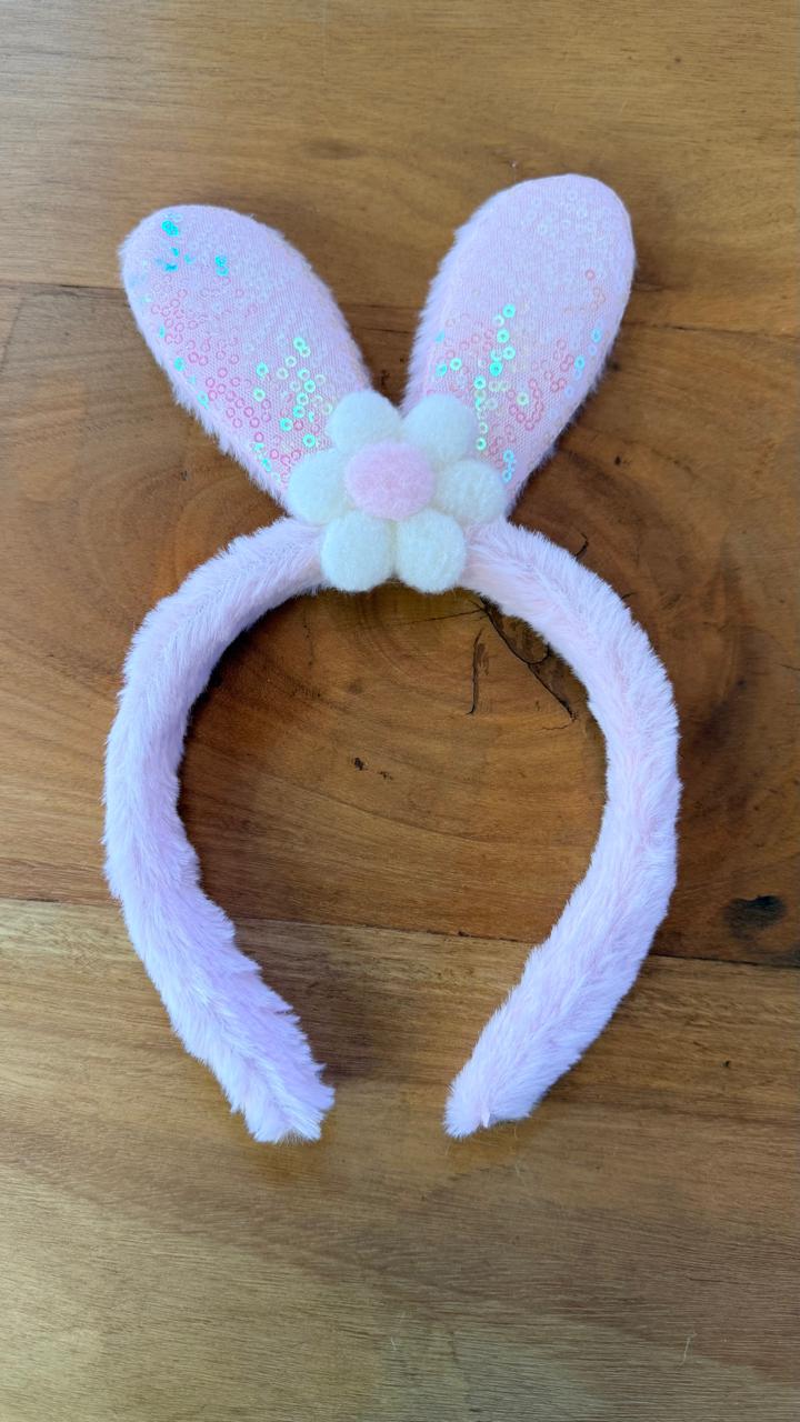 Tiara orelhas coelho rosa 25x15x2cm quantidade