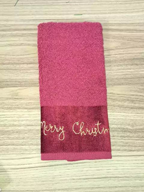 Toalha lavado bordada Merry Chrystmas Vinho quantidade