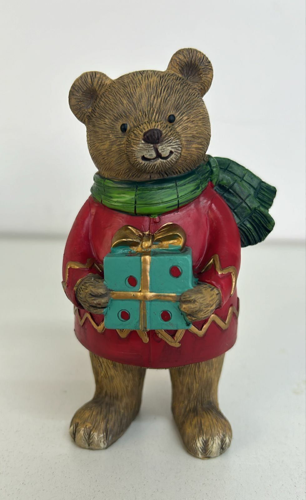 Urso casaco vermelho em resina 15x8x7cm quantidade