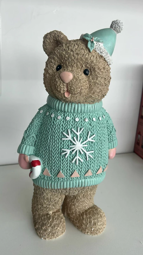 Urso em pé bengala em resina com 39cm de altura.