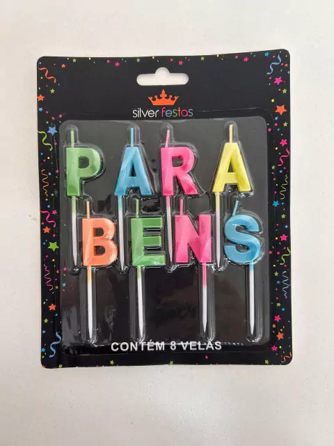 Vela para bolo Parabéns colorido quantidade