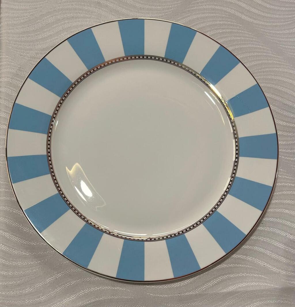 Kit com 6 pratos rasos branco e azul