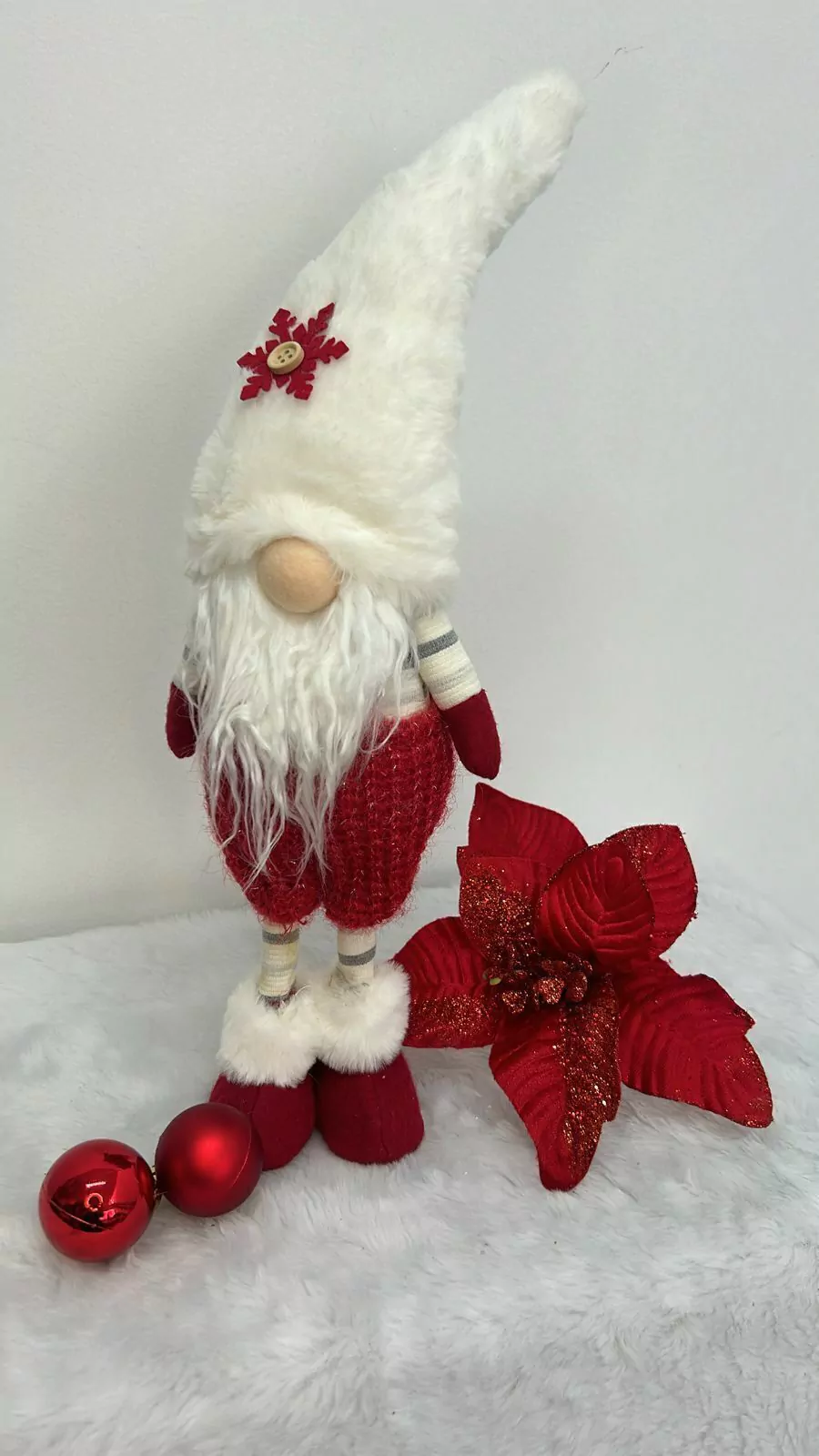 Papai Noel escandinavo verm bco com floco com 33cm de altura.